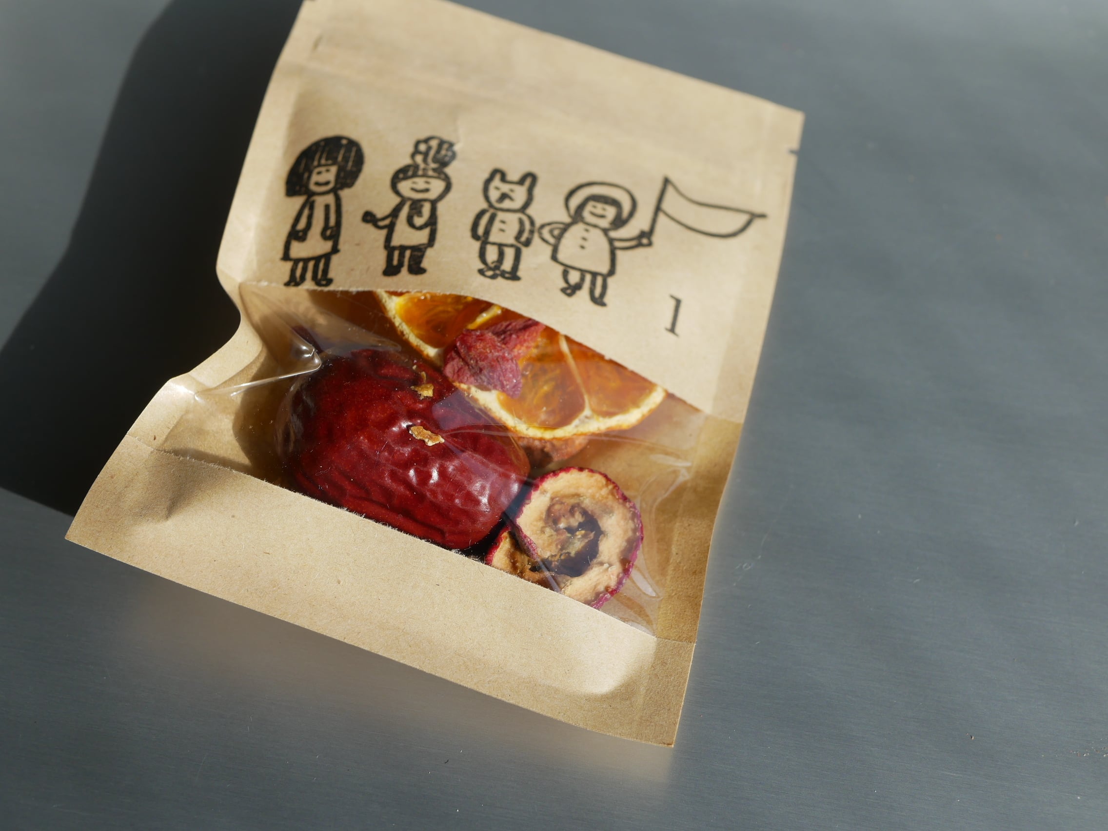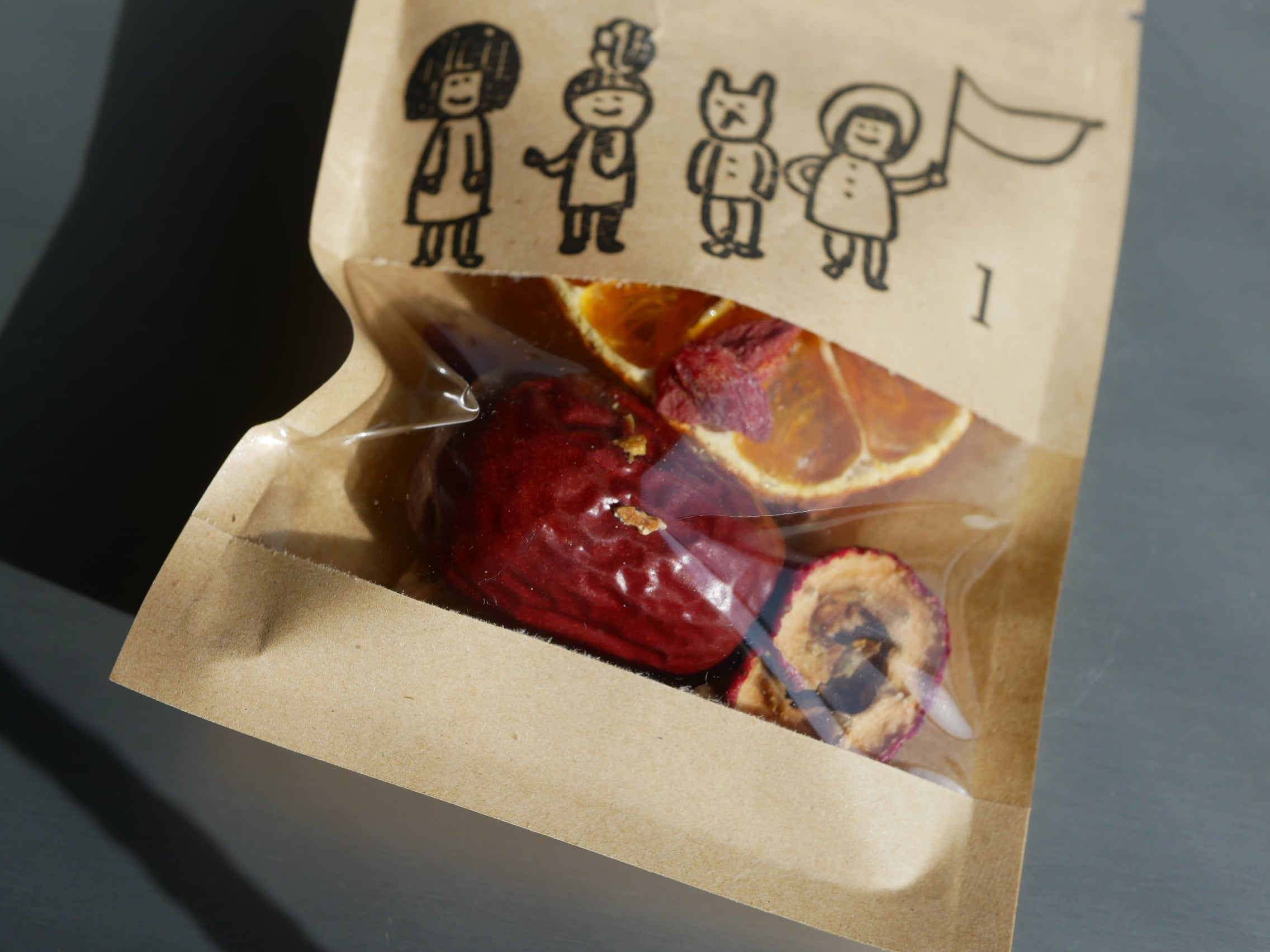 国産ドライみかんとなつめを中心に彩り嬉しいフルーティーな食べられる養生茶。